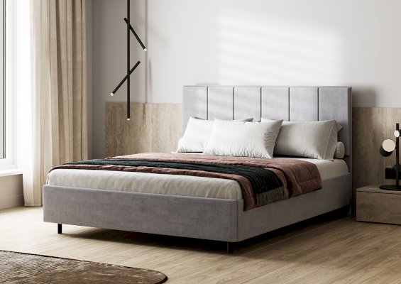 Кровать Мелоди с обивкой из велюра натуральных оттенков станет стильным элементом современного интерьера.