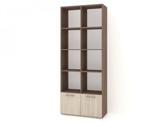 Применение задней стенки из ЛДСП (в ячейках с фасадами) позволяет использовать данный стеллаж для зонирования пространства (чтобы предотвратить опрокидывание, необходимо обеспечить крепление стеллажа к стене).