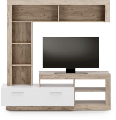 ТВ-тумба с большим выдвижным ящиком и открытыми нишами под мультимедиа превратит гостиную в настоящий домашний кинотеатр. Комбинированный стеллаж с открытой полкой подойдет для книг и предметов декора, способных оживить любой интерьер.