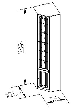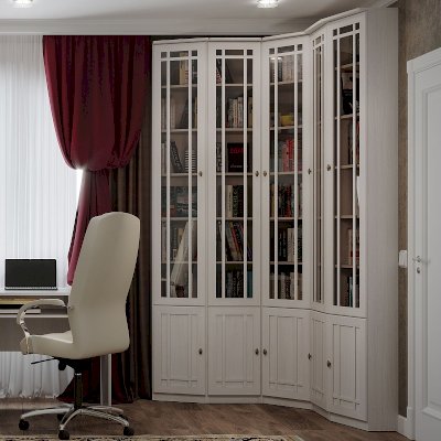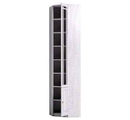 Высокий книжный шкаф для угловой композиции домашней библиотеки. Можно установить в комнату с высотой потолка не менее 240 см. Широкие треугольные полки позволят хранить в библиотеке папки с документами, шкатулки с семейным архивом и фотографиями. Высота полок во всех шкафах для книг регулируется, для этого необходимо только установить полкодержатели на нужной высоте в подготовленные отверстия. Это позволит поставить на полки книги и альбомы разного формата. Тонированное стекло защищает книги от вредного воздействия солнечных лучей и убережет их от пожелтения.