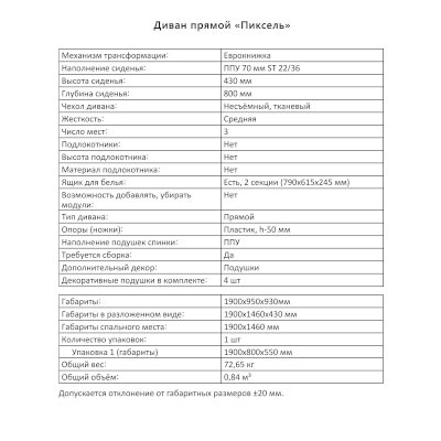Диван Пиксель (Аквилон) - за 30 305 руб. в Краснознаменске. Купите на сайте krasnoznamensk.onlinemarketmebeli.ru или по телефону 8(800)505-30-63 уже сегодня! Уточнить наличие, комплектацию, актуальную цену можно бесплатно у менеджера ежедневно. Закажите Диван Пиксель (Аквилон) до конца акции! Доступна покупка в кредит, рассрочку. Доставим со склада или на заказ.