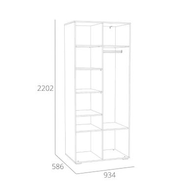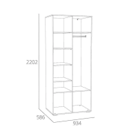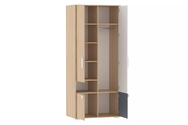 Шкаф оснащен четырьмя распашными дверьми и множеством полок, которые обеспечивают достаточно места для хранения вещей. Внутри шкафа предусмотрена овальная штанга для одежды на вешалках. Комбинируйте шкаф для одежды и одноименные модульные шкаф-пеналы или стеллаж, чтобы создать системы хранения на любой вкус и размер!