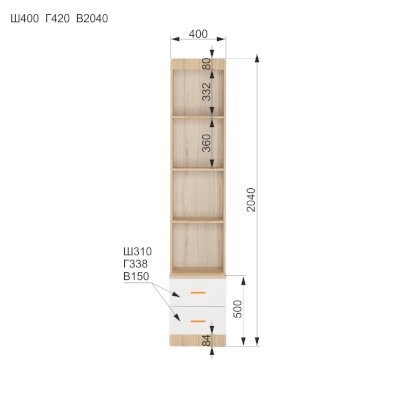 ШхГхВ 400 x 416 x 2040 мм