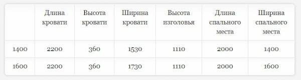 Размер спального места 140*200 / 160*200