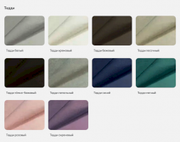 | Цвет | БЕЖЕВЫЙ / БЕЛЫЙ / ГОЛУБОЙ / ЗЕЛЕНЫЙ / КОРИЧНЕВЫЙ / РОЗОВЫЙ / САЛАТОВЫЙ / СЕРЫЙ / СИНИЙ / СИРЕНЕВЫЙ / ЧЕРНЫЙ / КОФЕ |
