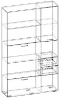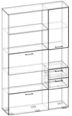 Применение задней стенки из ЛДСП (в ячейках с ящиками и фасадами) позволяет использовать данный стеллаж для зонирования пространства (чтобы предотвратить опрокидывание, необходимо обеспечить крепление стеллажа к стене).
