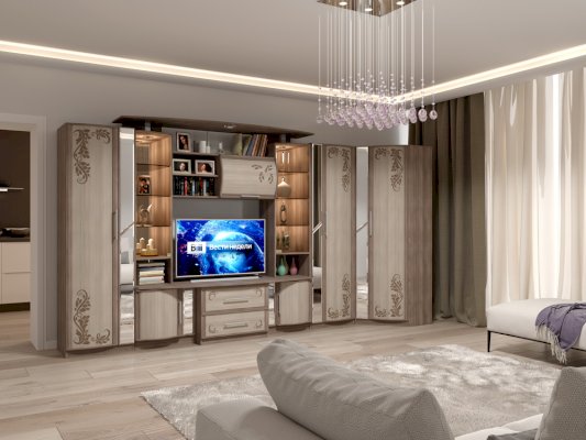 Гостиная «Кристина-3» подходит для различных типов интерьера благодаря разнообразию цветового оформления. Она позволяет оборудовать вашу квартиру с максимальным удобством и функциональностью. Сервант состоит из симметричных витрин, множества шкафов и полок, а также предусмотрена ниша для телевизора. Корпус выполнен из ЛДСП, фасады МДФ.