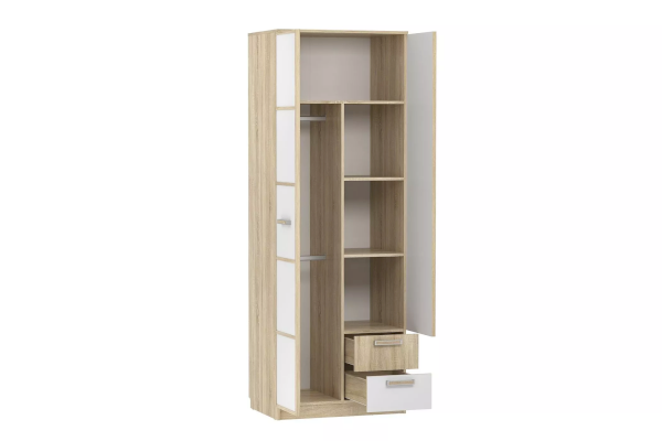 Шкаф «Фанк» предназначен для тех, кто любит выдержанный стиль. Идеально для организации подростковой комнаты. А универсальный дизайн и цветовое решение подойдет как для мальчика, так и для девочки. Отделение с 2-мя штангами позволит удобно развесить большое количество одежды на вешалках. Наличие полок позволит рассортировать одежду и поставить коробки. Два выдвижных ящика предназначены для сложенной одежды, аксессуаров, личных вещей.