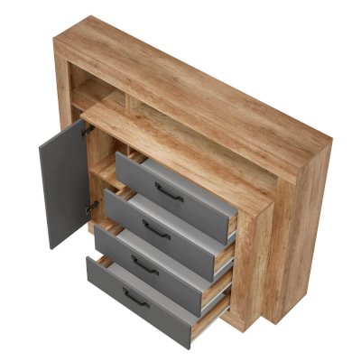 Комод многофункциональный Прима КМ-17  - удобная система хранения для одежды, постельных принадлежностей или других хозяйственных аксессуаров. Все необходимые вещи можно расположить на полках за распашной створкой, а также в трёх вместительных выдвижных ящиках на роликовых направляющих, которые обеспечивают легкую и бесшумную эксплуатацию модели.