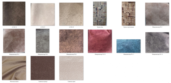 Вы можете выбрать обивку из предложенных вариантов. Если вы не нашли подходящего варианта, можете выбрать любую понравившуюся ткань на сайте производителя: